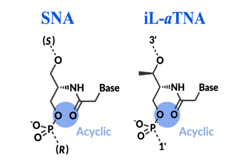 Leveraging their characteristics—stable duplexes with canonical DNA or RNA, strong resistance to nuclease degradation and lower cytotoxicity—SNA and iL-aTNA can be utilized for design, synthesis and evaluation tailored to your objectives.
